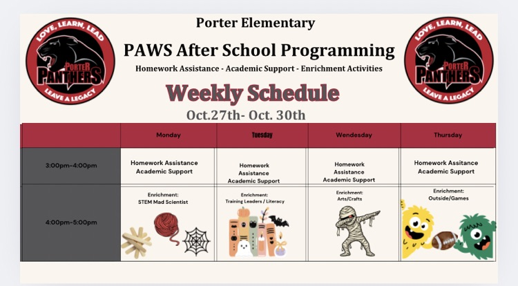 We’re excited to announce that our Scholastic Book Fair will be held Monday, October 27th through Friday, October 31st here at Porter Elementary! This is always such a fun event that helps build excitement around reading while also supporting our school.